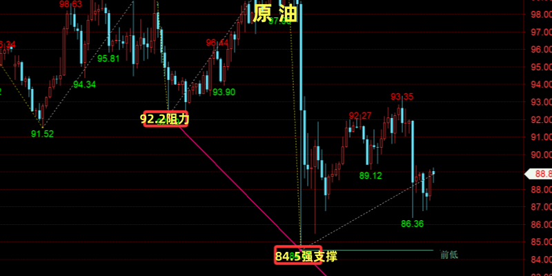【个人建议:高空为主;WTI分水岭:88.9/桶!以上观点,仅供参考;分散合理布局 ,严控风险!关注笔者(企鹅:304236956)投资不焦虑,交易有方法】